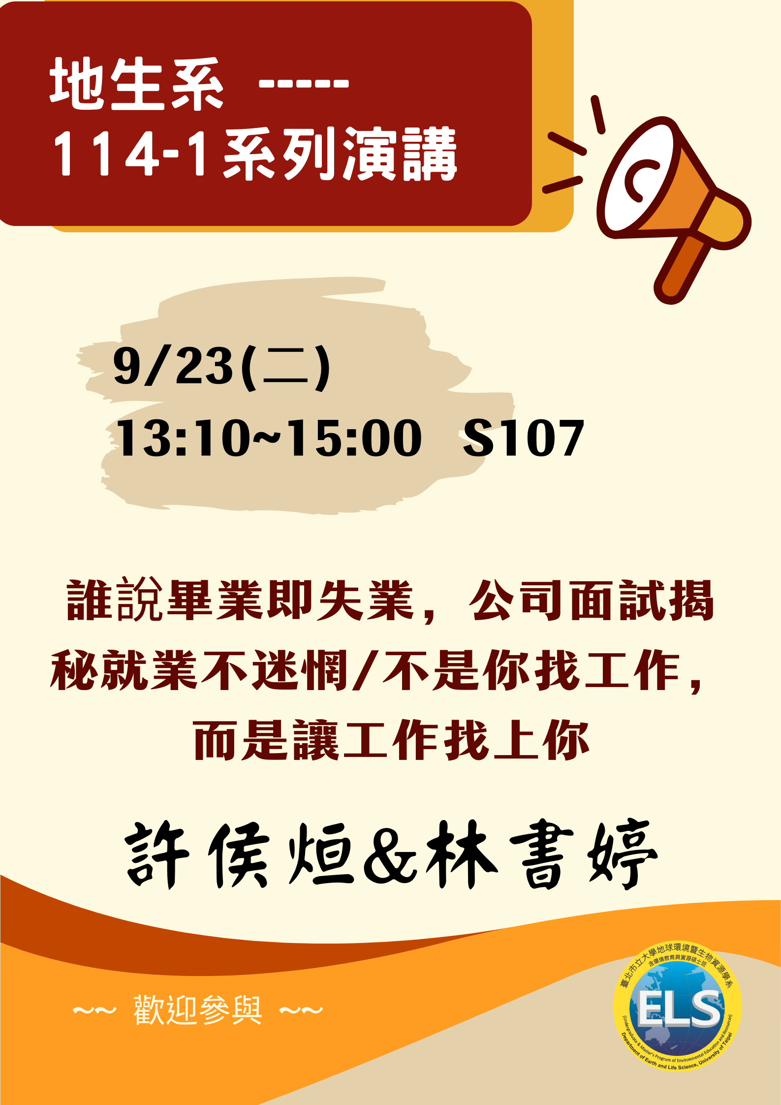 2025/9/23 誰說畢業即失業,公司面試揭密就業不迷惘/不是你找工作,而是讓工作找上你 許侯烜&林書婷